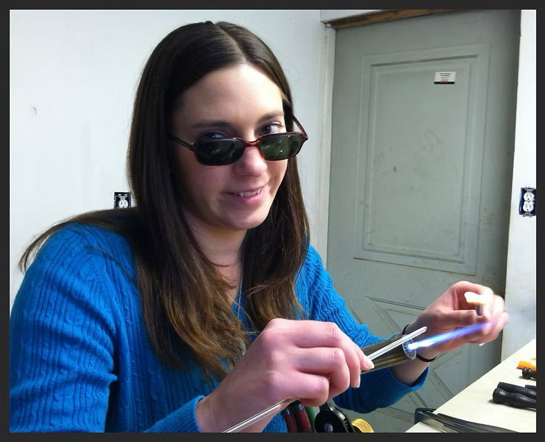 Once I familiarized myself with borosilicate glass I ventured out on my own and built a studio in 2008. After continuing to work with glass for many years, I met who is now my husband, Jeremy, before his deployment to Afghanistan as a Navy Seabee. When he returned from overseas we moved back to his home town of Addison, New York in January of 2011.