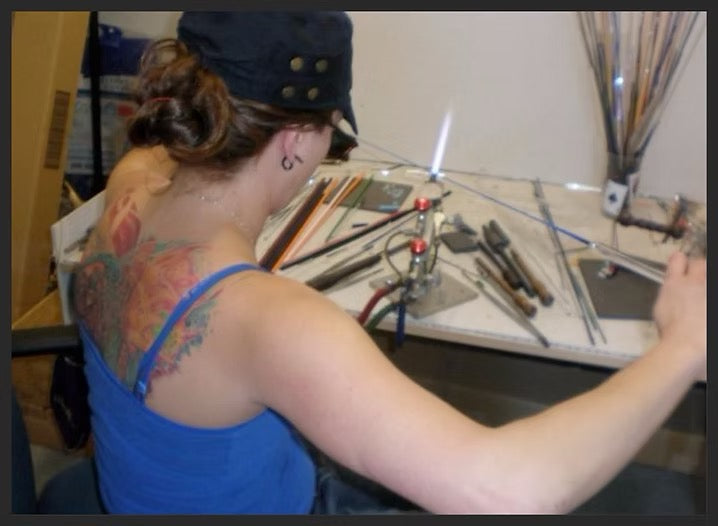 Hello! I'm Elisabeth Newell, the sole artist and creator behind The Flowing Crystall. I have always been interested in art and anything that I can create with my hands. In 2005 I learned to make my first pendant and discovered my passion for borosilicate glass and continued to learn from local glass artists in Encinitas, a small town in North County, San Diego, California.