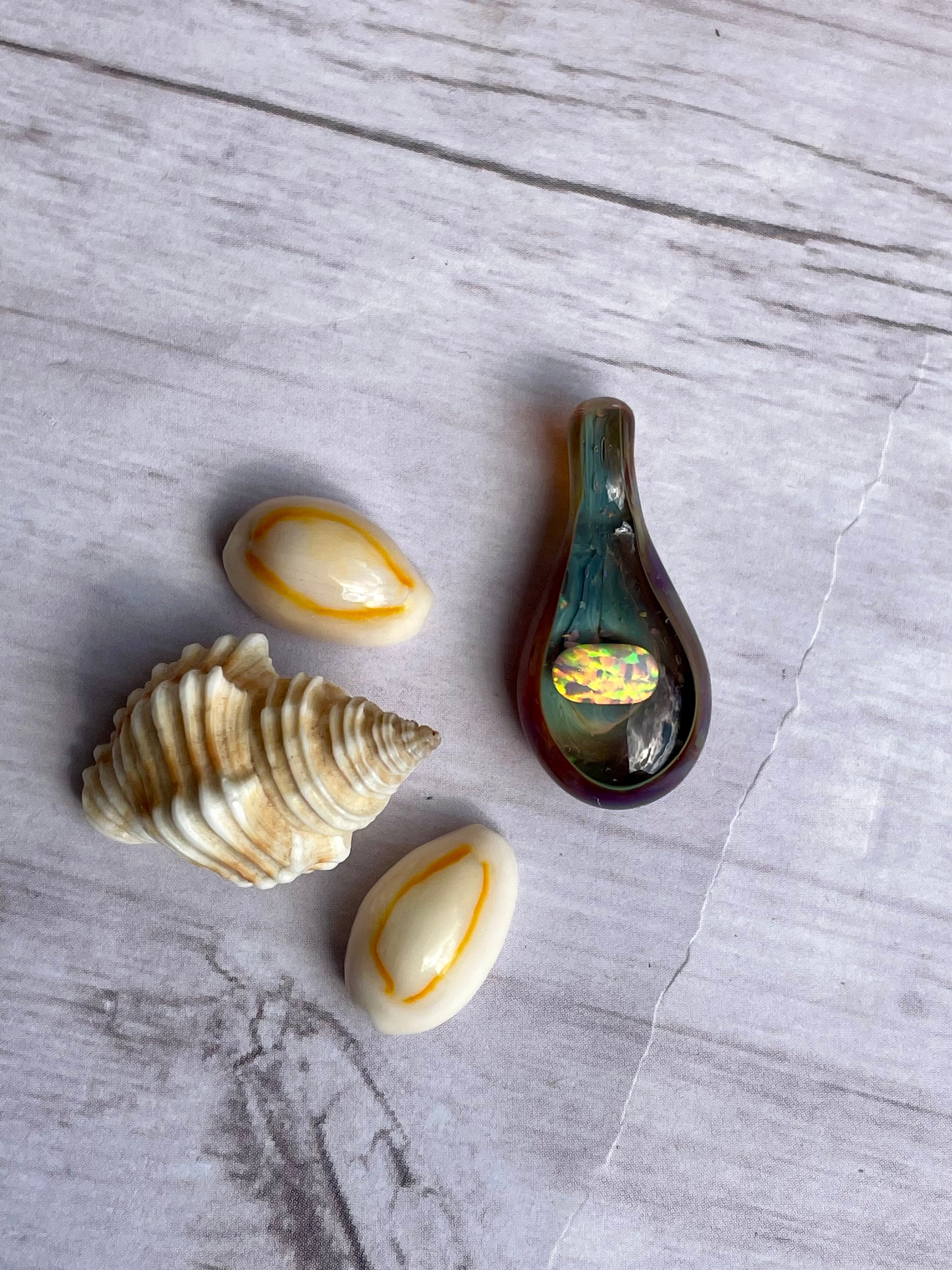 Do you have a wife, teacher, daughter, or girlfriend who deserves something as amazing as she is? This is the perfect gift for someone you appreciate, or even a little something for yourself! This Blown Glass Encased White Opal Pendant is the exact one that you will receive and it is backed in a green and beautiful purple color, the purple and green hues compliment the tumbled white opal nicely, making the opal pop with different colors depending on the light and angle of the pendant. This pendant also features a mystical dusting of crushed opal.